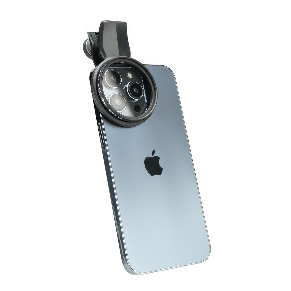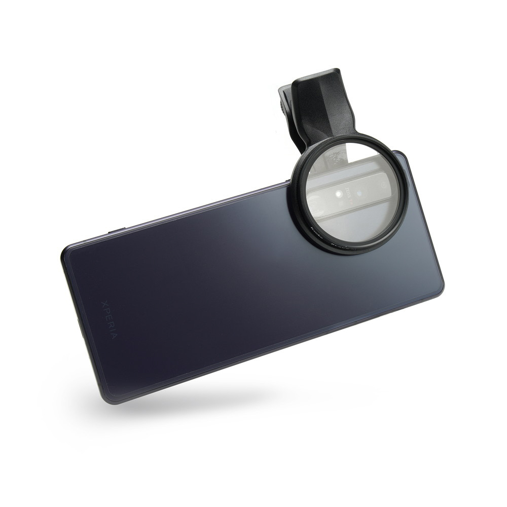 装着はクリップ式なので、撮影したいときにさっと取り出してスマートフォンに挟むだけ。思いついたクリエイティブを逃しません。ネジストッパーで、ピッタリとフィルターの位置を決めることが出来ます。