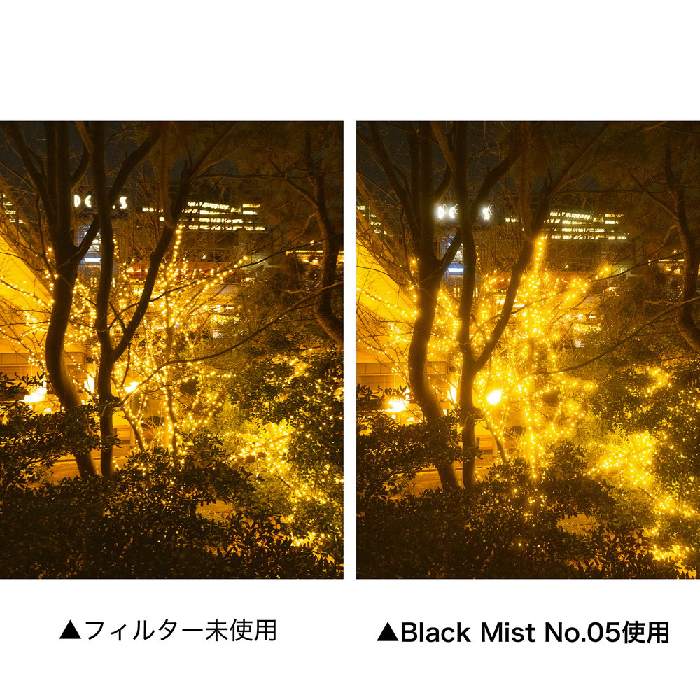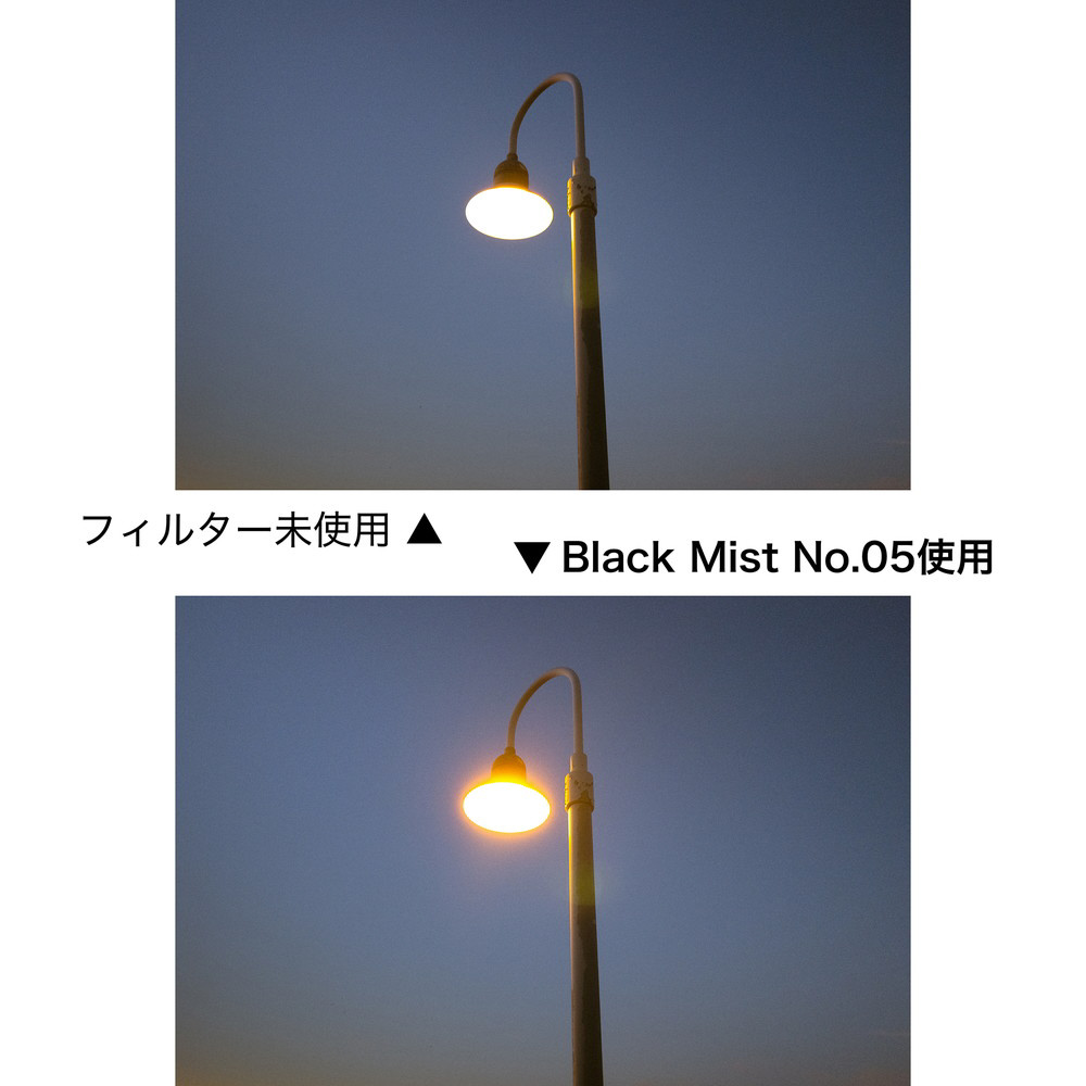 ブラックミストNo.05は、非常に微細な黒い拡散材を光学ガラスで挟み込んだソフトフィルターです。