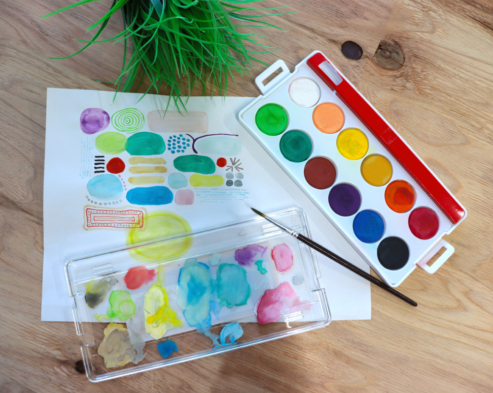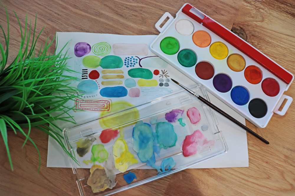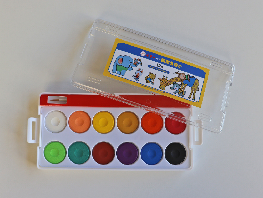園児・小学校低学年から大人の方まで、幅広くお使いいただける固型の水彩絵具です。