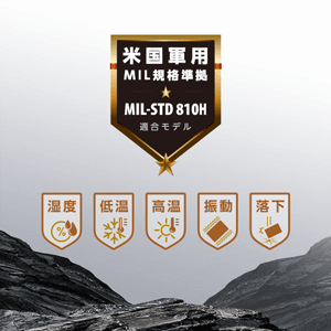 使う人や場所を選ばない洗練されたデザインの本体は、ミリタリーグレードの耐久テストを複数項目クリアしており、デザイン性と堅牢性を両立しています。