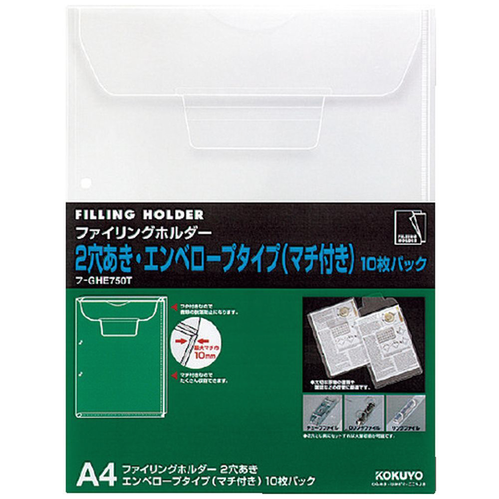 コクヨ ファイリングホルダー(2穴あき) A4縦 透明 マチ付き封筒型 10枚入 フ−GHE750T 55048101