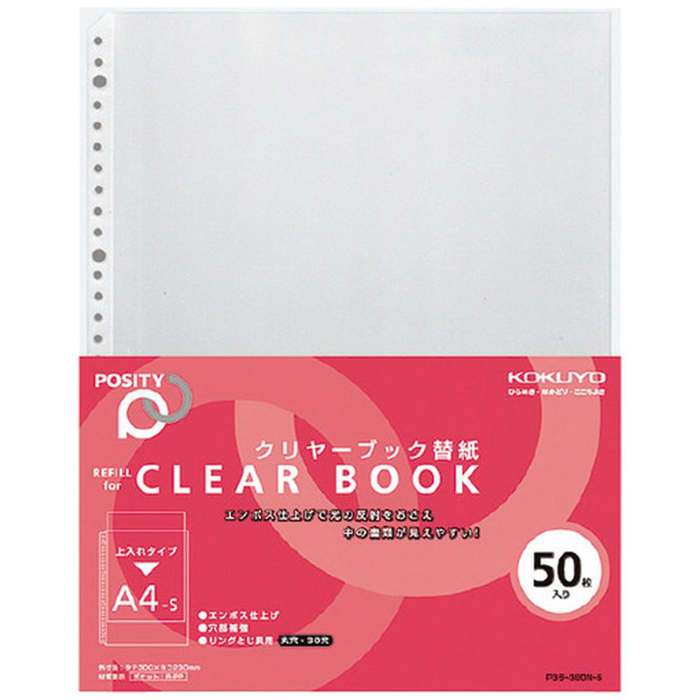 コクヨ クリヤーブック替紙<POSITY> 中紙無し A4縦 30穴 50枚入 P3ラ−380N−5 50521777