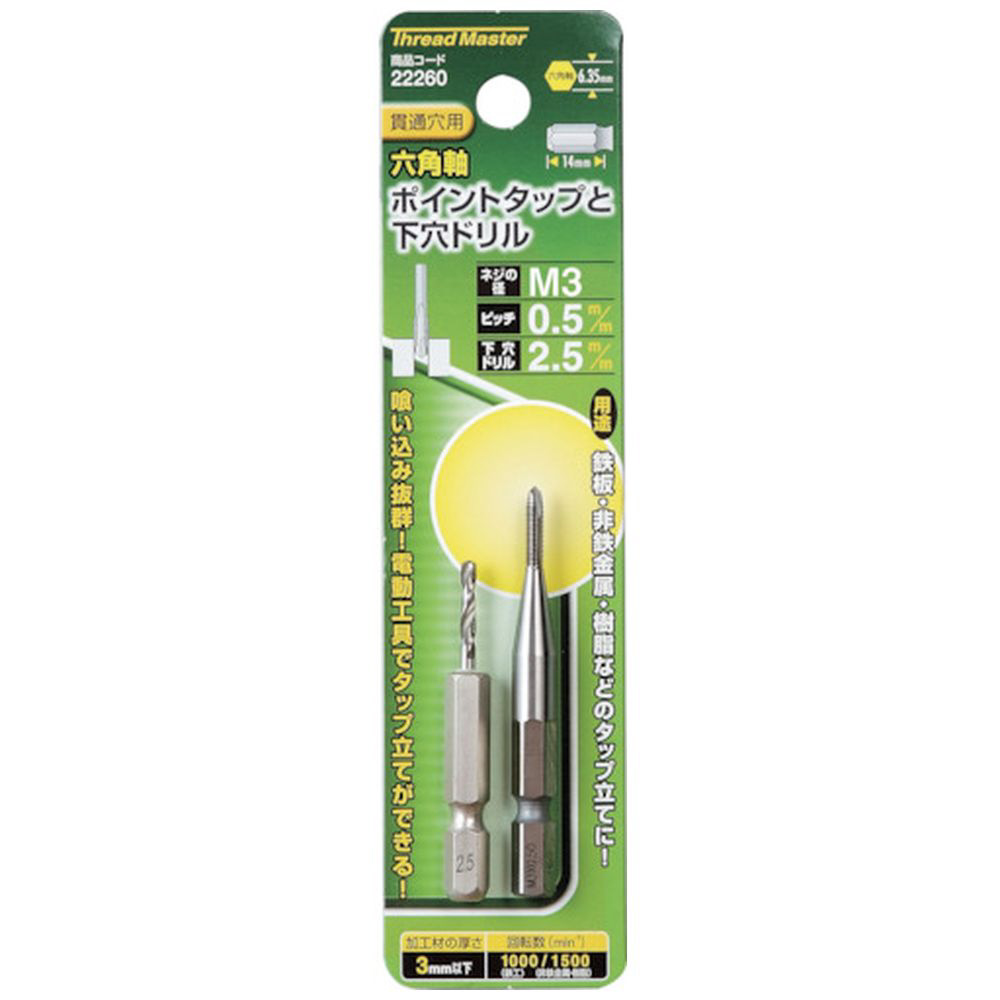 ミツトモ 六角軸ポイントタップ M3×0.5mm 2.5mm下穴ドリル付 22260