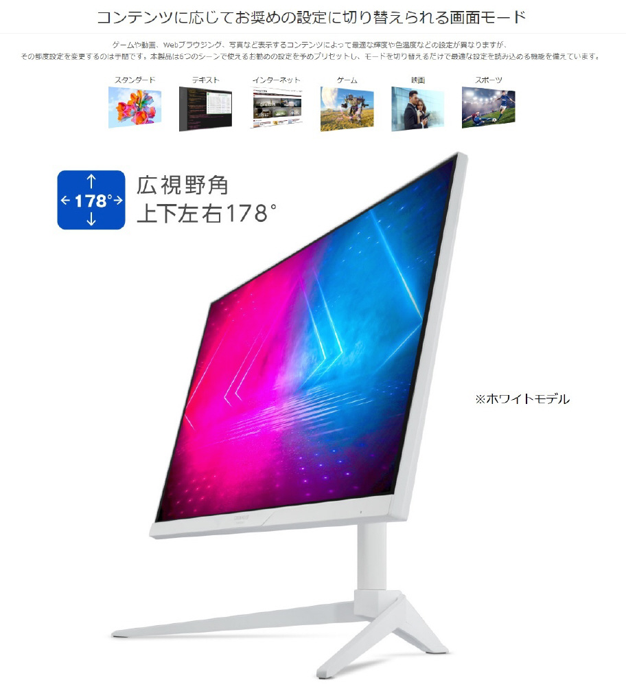 ゲームや動画、Webブラウジング、写真など表示するコンテンツによって最適な輝度や色温度などの設定が異なりますが、その都度設定を変更するのは手間です。