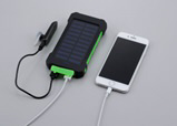 太陽光(ソーラー)とUSB両方で充電できるモバイルバッテリー。