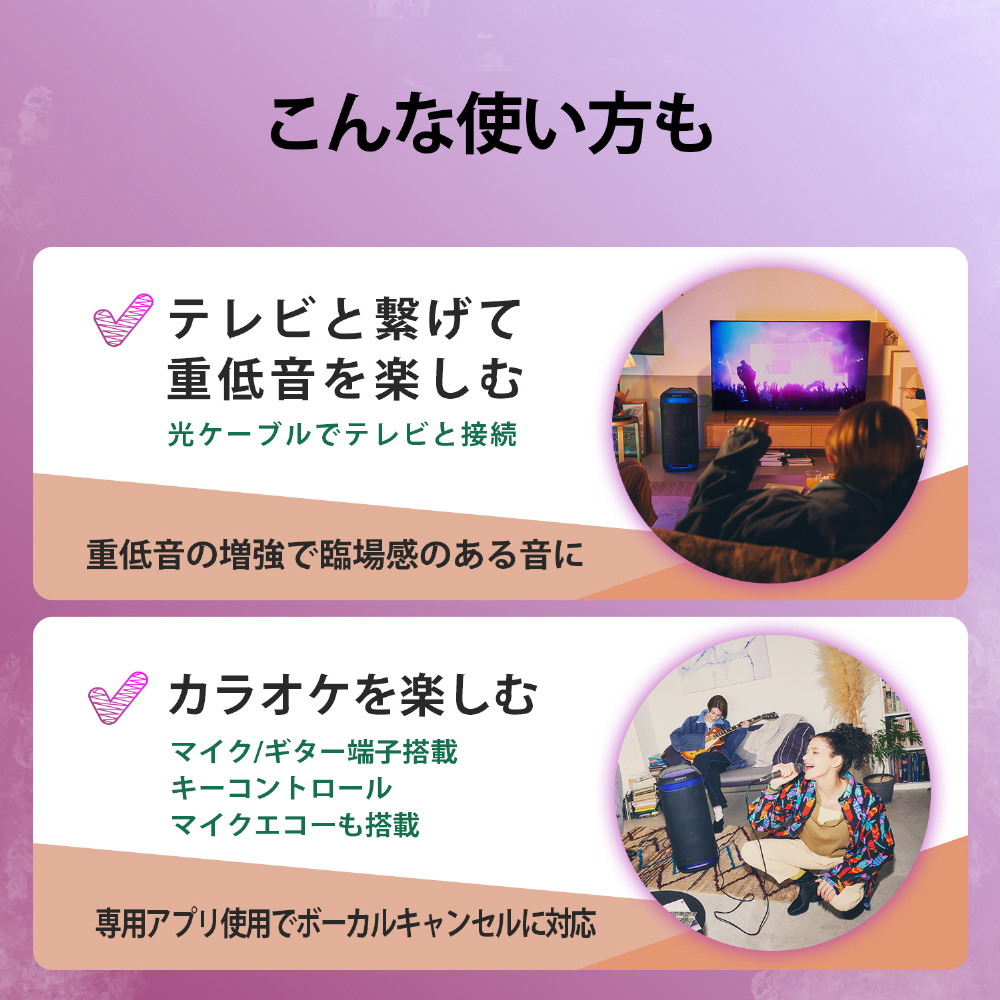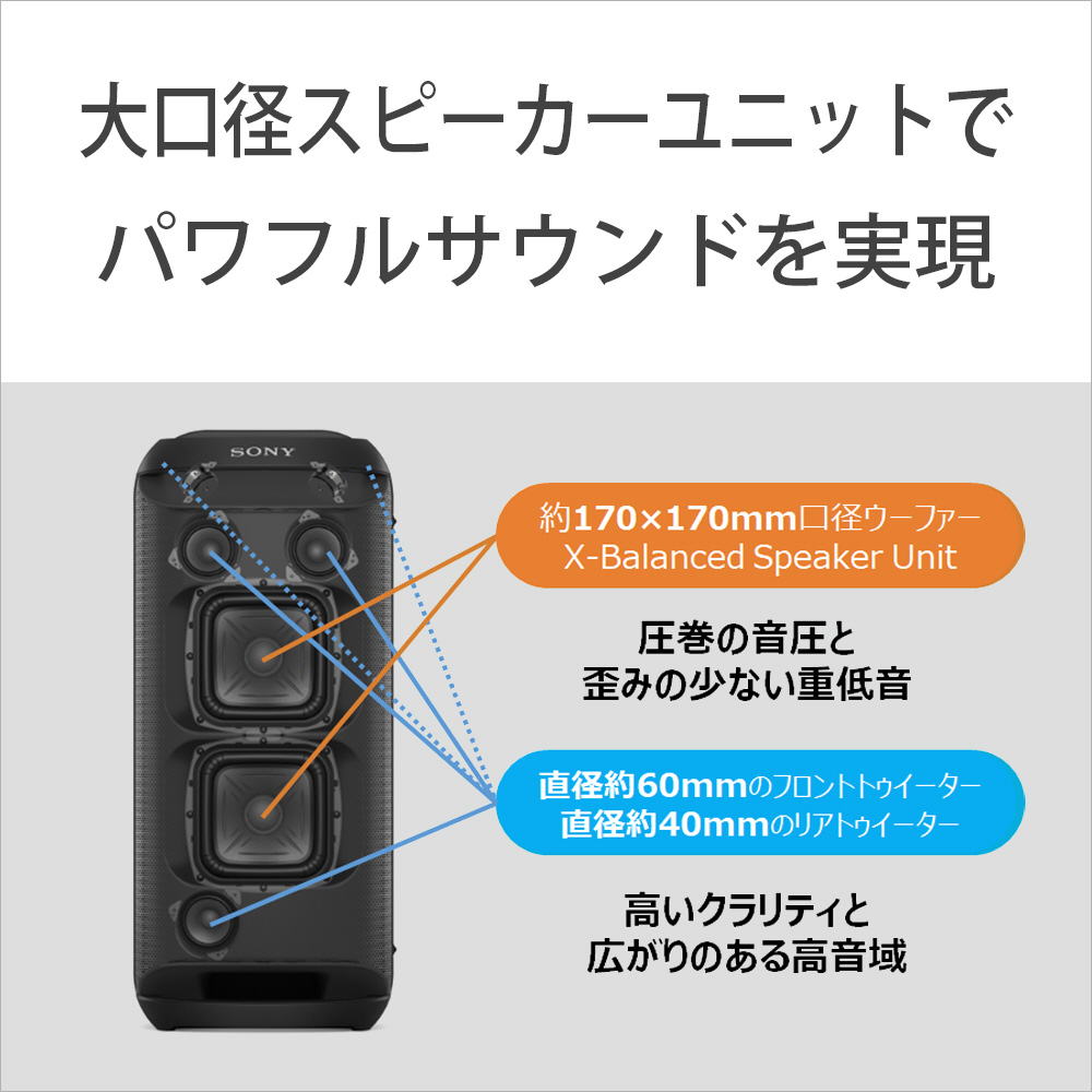クリアな高音質と大迫力の重低音により、圧巻のパワフルサウンドをお届けします。