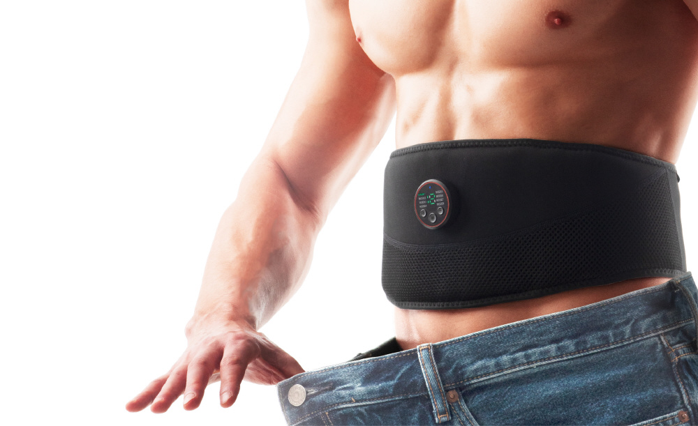 低周波を発生する専用ベルトを腹部に巻いて、腹筋をトレーニング!