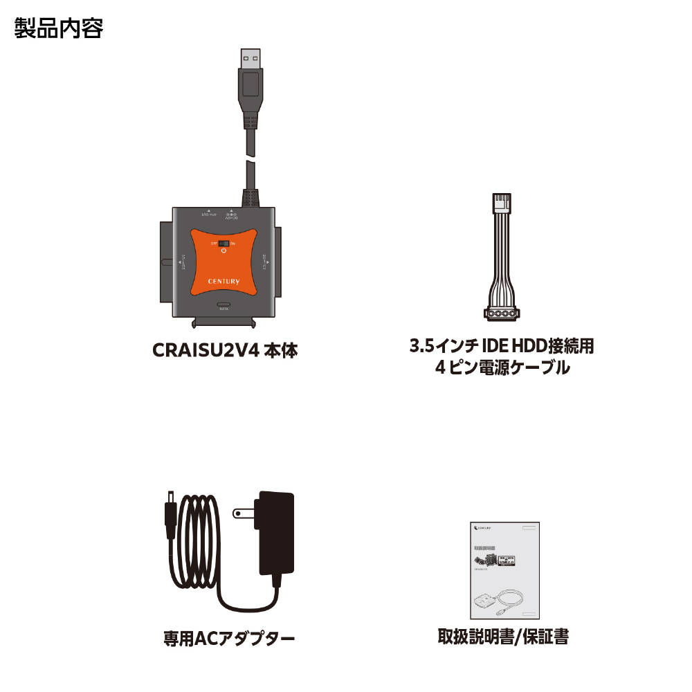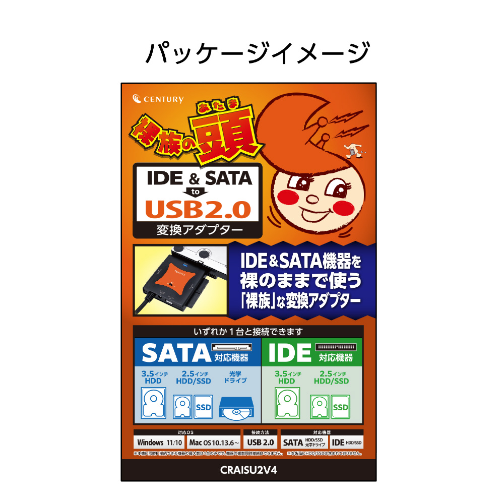 2.5インチ・3.5インチHDD/SSD用 変換アダプター USB-A接続 [SATA+IDE] 光学ドライブ対応 裸族の頭 IDE+SATA Ver.4 ブラック / オレンジ CRAISU2V4