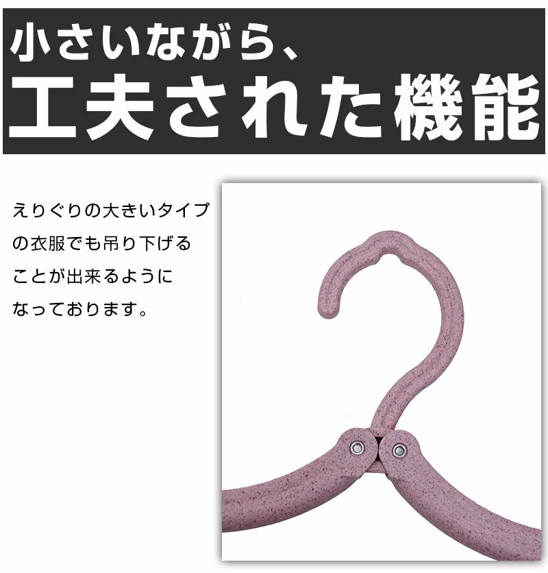 えりぐりの大きいタイプの衣服でもつりさげることが出来るようになっております。