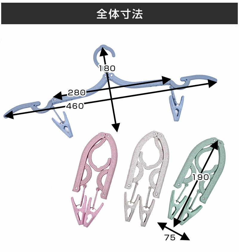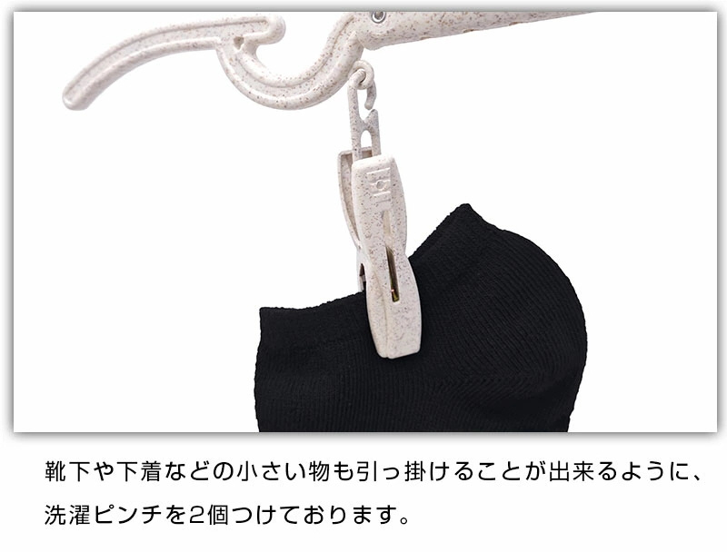 靴下や下着などの小さい物も引っ掛けることが出来る様に洗濯ピンチを2個付けております。