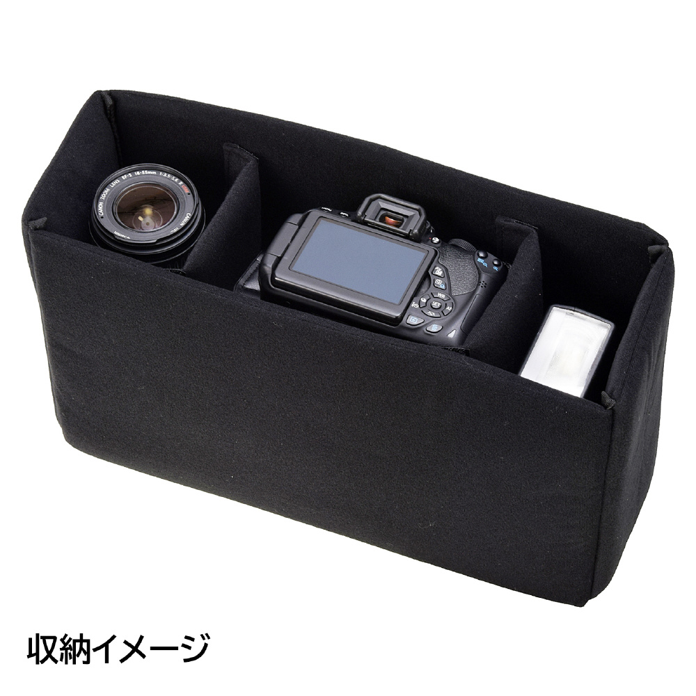 レンズやカメラ、大切な機材の収納には衝撃を和らげるクッションボックスが最適。普段使いのカジュアルバッグの内部へセットするだけで、カメラバッグとして使用できるインナープロテクターです。自由にレイアウトできる中仕切りでさらにしっかり保護できます。
