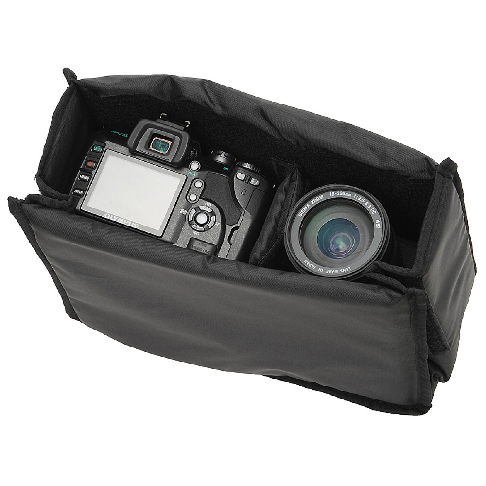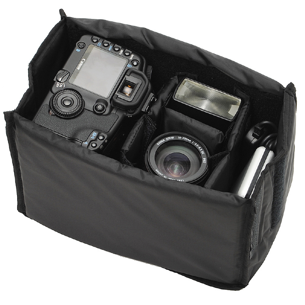 大切なカメラやレンズを衝撃から護るクッション材。普段使いのバッグをカメラバッグに変身。便利なマチ幅拡張機能付き。