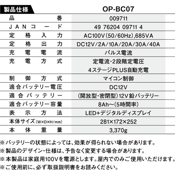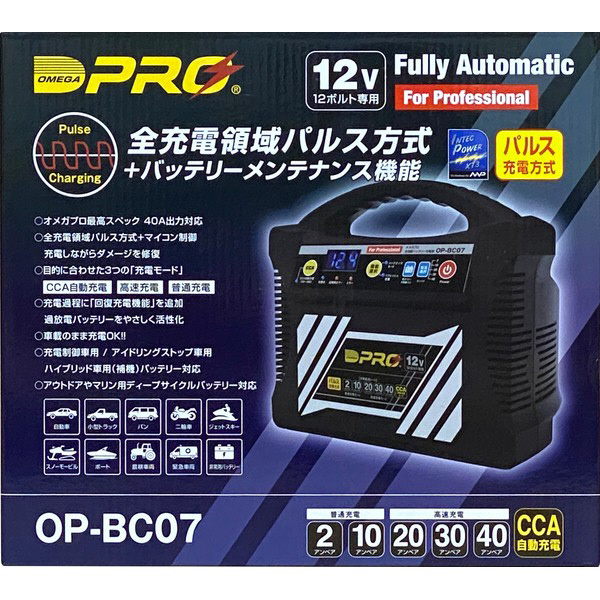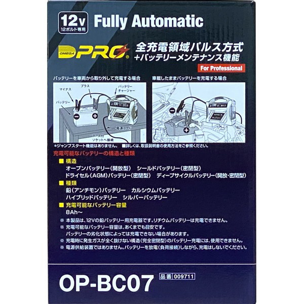 | 商品名 | 自動車・バイク用 全自動バッテリー充電器 OP-BC07 |