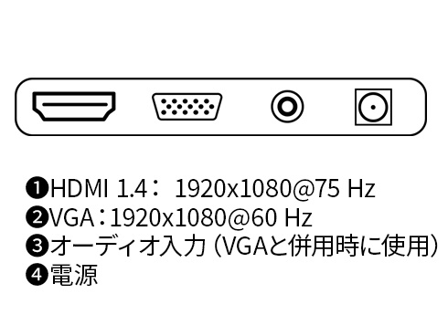 | 垂直走査周波数(Hz) | HDMI:@75Hz、VGA:@60Hz |