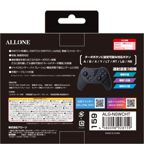 Switch用ワイヤレスコントローラー ホールドターボ ALG-NSWCHT 【sof001】