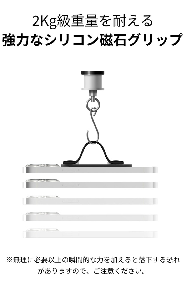 | 付属品 | 固定板付メタルプレート1個、マグネット付シリコングリップ1個、粘着透明フィルム1枚、取扱説明書 |