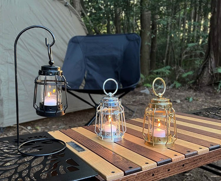テーブルの上でも場所をとらない、コンパクトサイズのキャンドルランタン。シンプルかつインダストリアルなデザインでアウトドアシーンを盛り上げます。