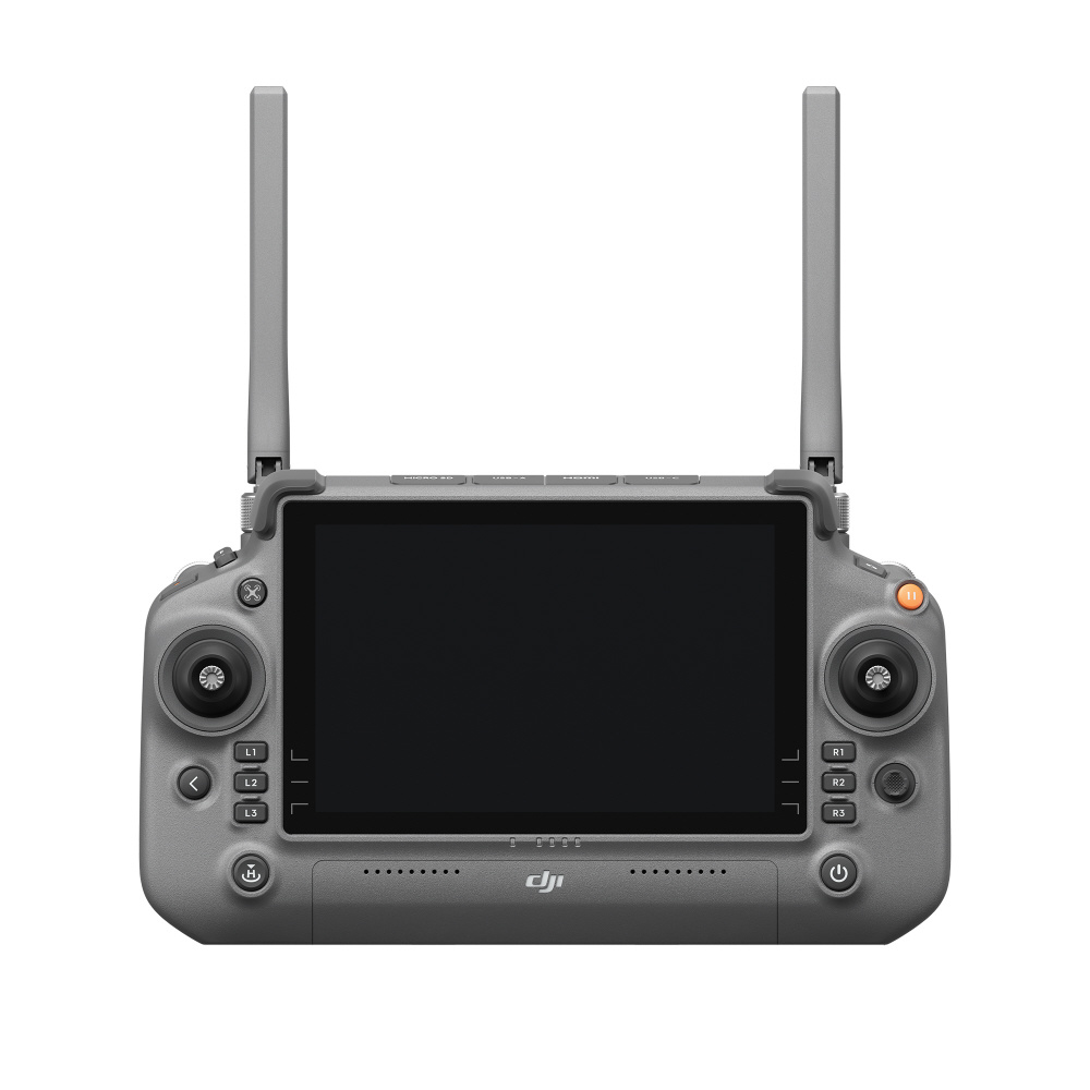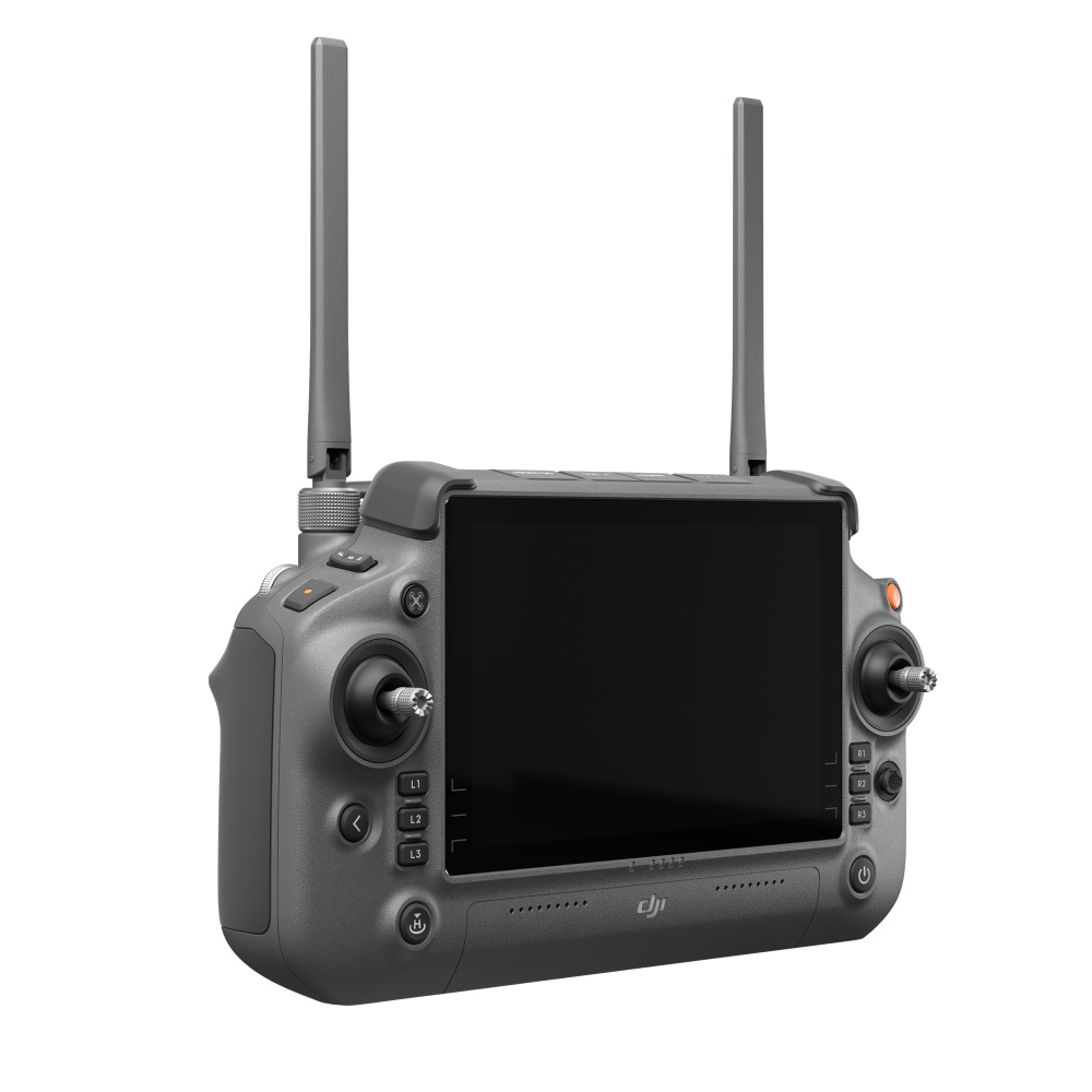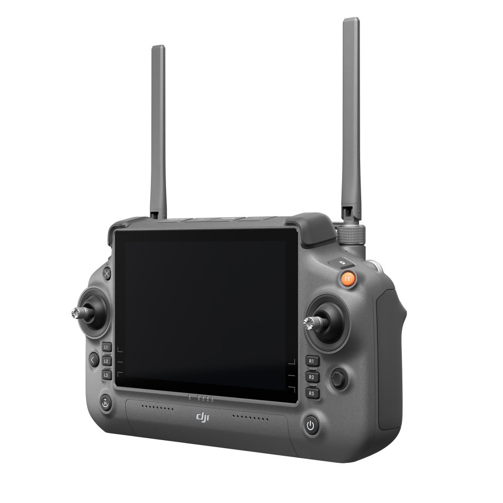 送信機の前面、背面、上部に複数のボタンやダイヤルを配置