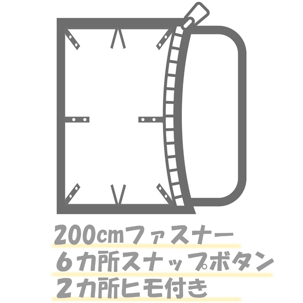 素材:綿100%(210cmファスナー 6ヶ所スナップボタン 天地2ヶ所ヒモ付き 両面プリント)