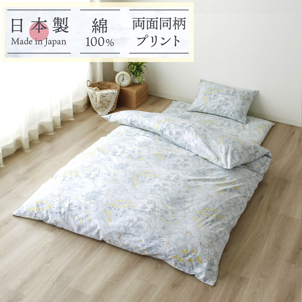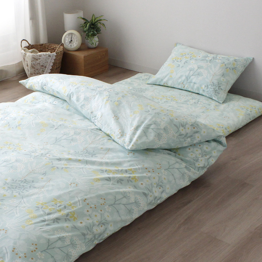 【掛け布団カバー】 綿100% シングルロングサイズ ボタニカルフラワー カレリア(150×210cm) グリーン 223587-53