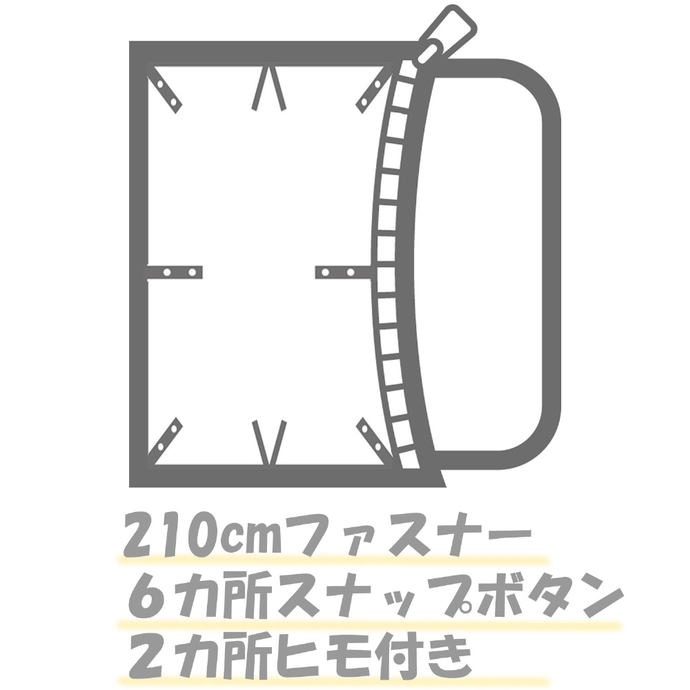 素材:綿100%(210cmファスナー 6ヶ所スナップボタン 天地2ヶ所ヒモ付き 両面プリント)