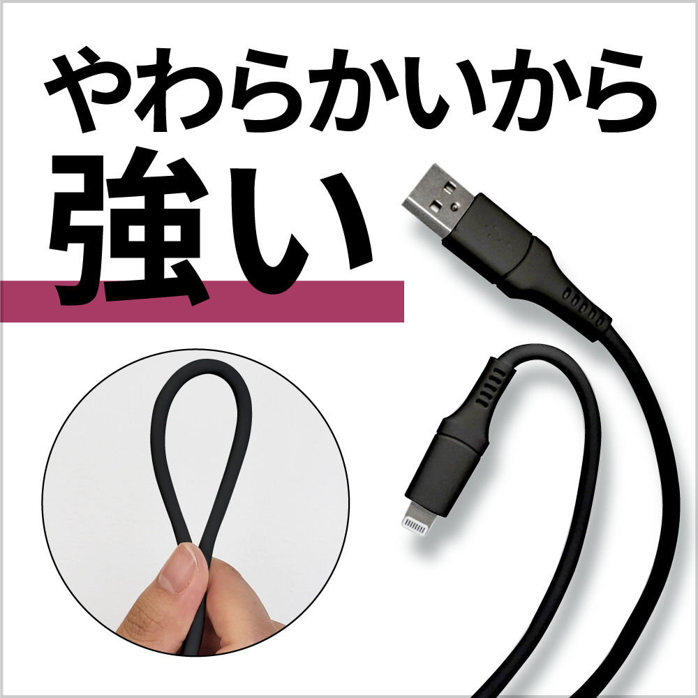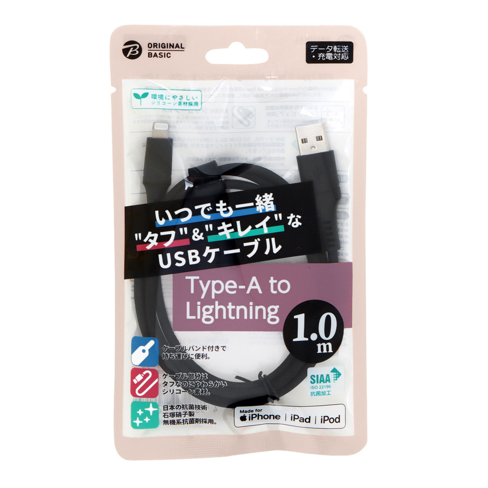 iPhone 充電ケーブル Type-A to ライトニングケーブル 1m MFi認証 シリコーン素材 やわらかい 抗菌仕様 SIAA認証 ブラック OS-UCS1AL100BK 【864】