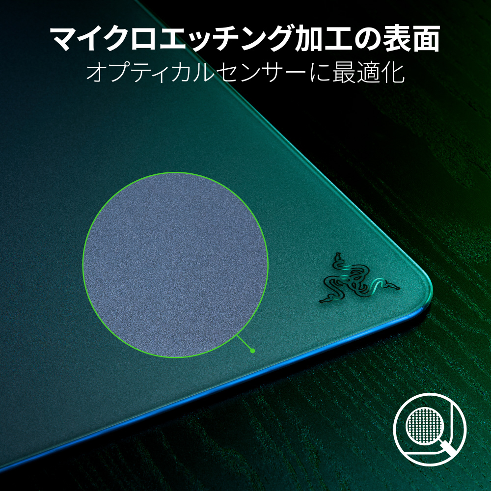 プレミアムな強化ガラスで耐久性を考慮して設計された、Razer初のガラス製ゲーミングマウスパッドで照準を合わせましょう。