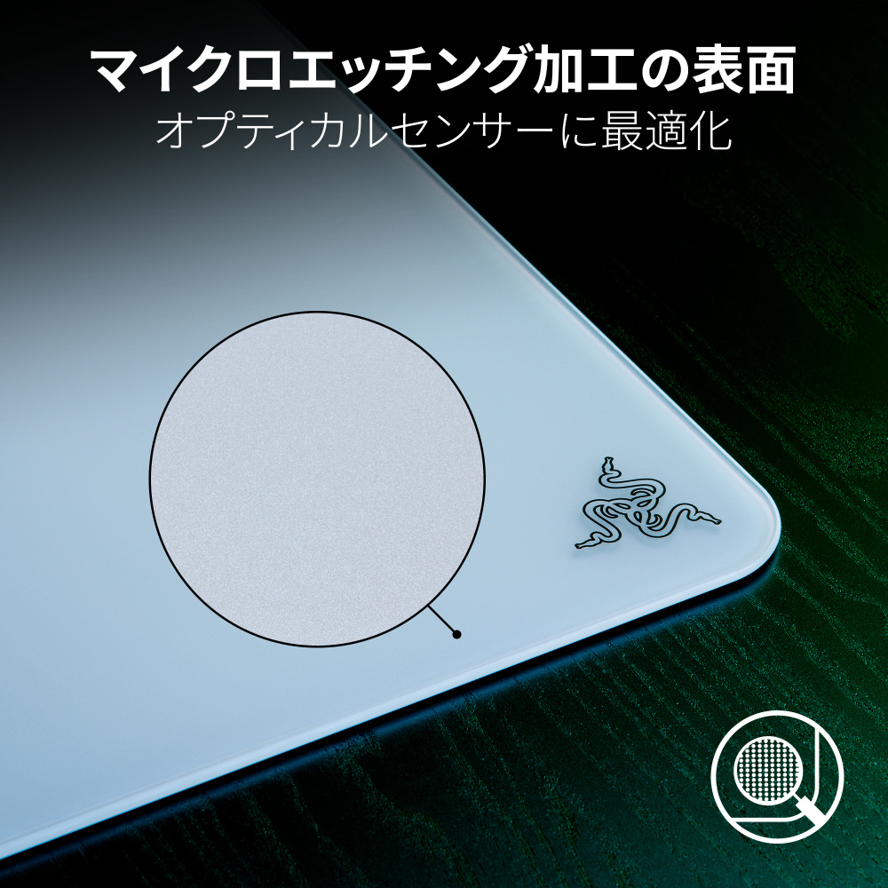 プレミアムな強化ガラスで耐久性を考慮して設計された、Razer初のガラス製ゲーミングマウスパッドで照準を合わせましょう。