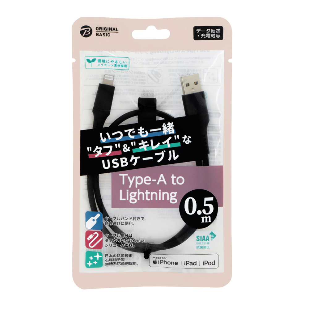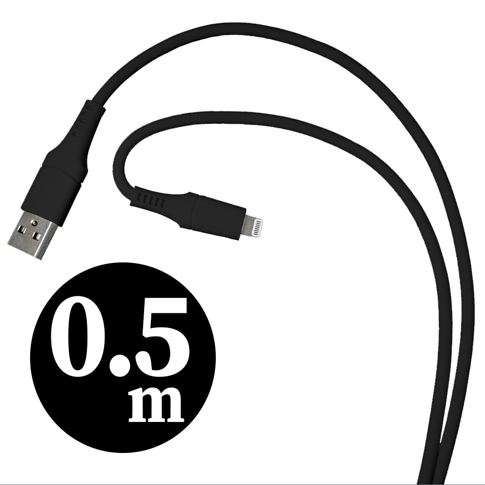 iPhone 充電ケーブル Type-A to ライトニングケーブル 0.5m MFi認証 シリコーン素材 やわらかい 抗菌仕様 SIAA認証 ブラック OS-UCS1AL050BK 【864】