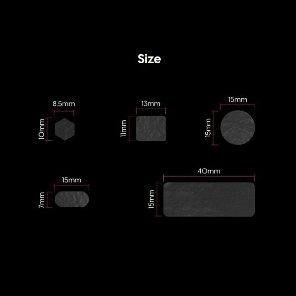 | 仕様1 | [対応機種]ゲーミングデバイス [サイズ] 六角形:10x8.5mmx12 四角形:11x13mmx8 円形:15x15mmx4 楕円形:7x15mmx4 長方形:15x40mmx4 |