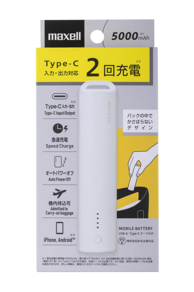 | 商品名 | スティック型モバイル充電バッテリー 5000mAh 付属ケーブル長: 約20cm ホワイト MPC-CS5001WH [2ポート] |