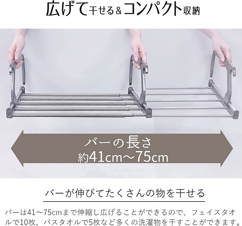 自由に配置をすることができるので小物からフェイスタオル、バスタオルまでを自由に干すことができます。
