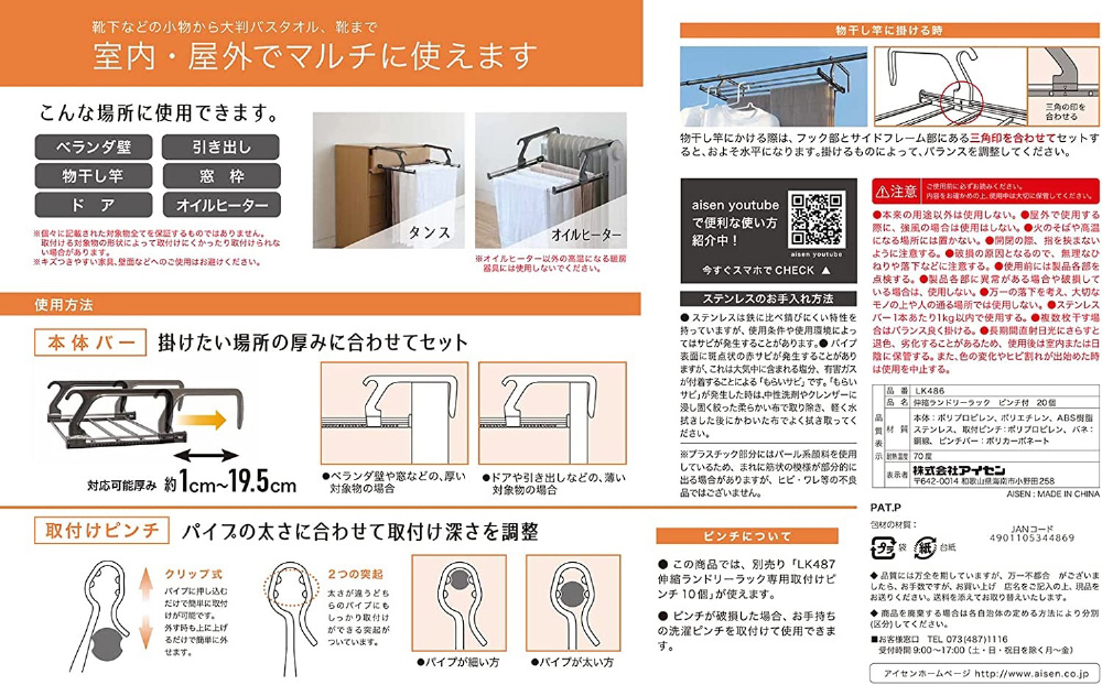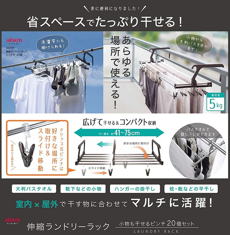 ■LK485伸縮ランドリーラックにピンチ20個が付いた商品。
