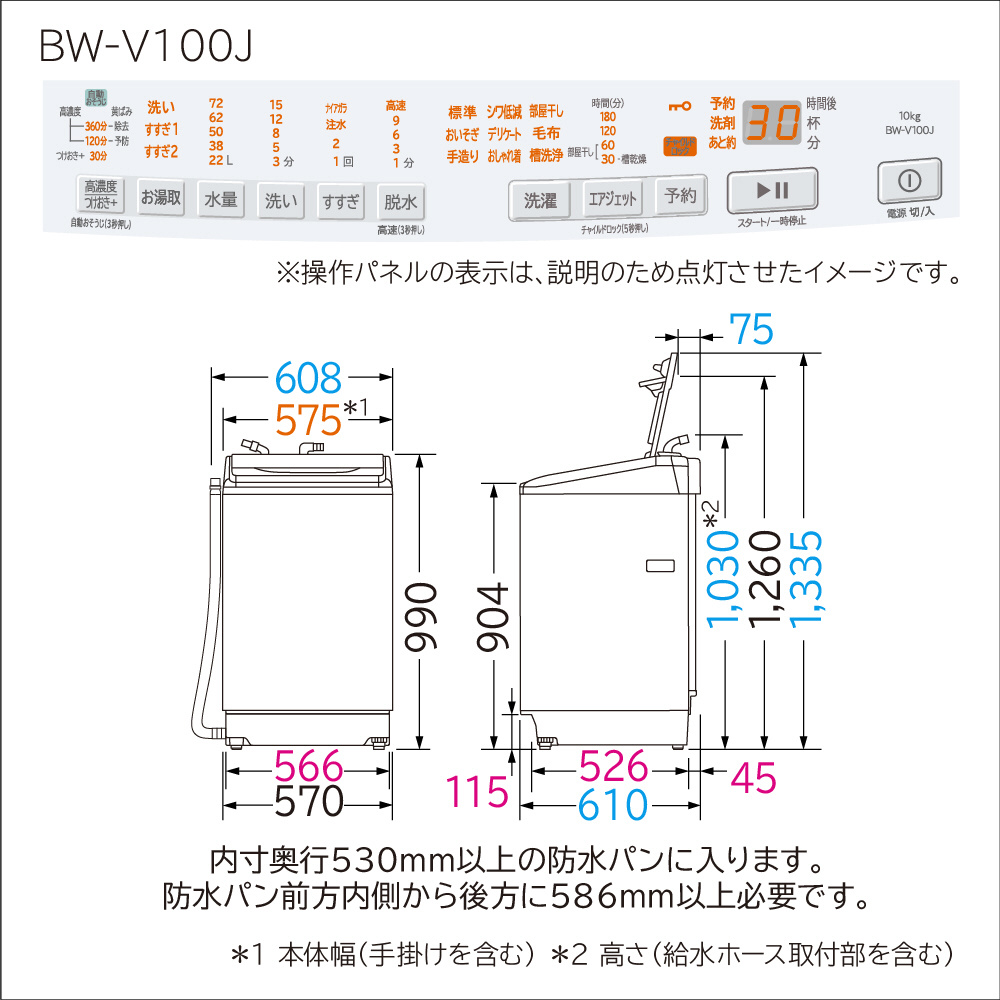 インバーター洗濯機9k以上 ビートウォッシュ ホワイト BW-V100J-W [洗濯10.0kg /簡易乾燥(送風機能) /上開き]