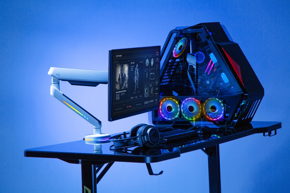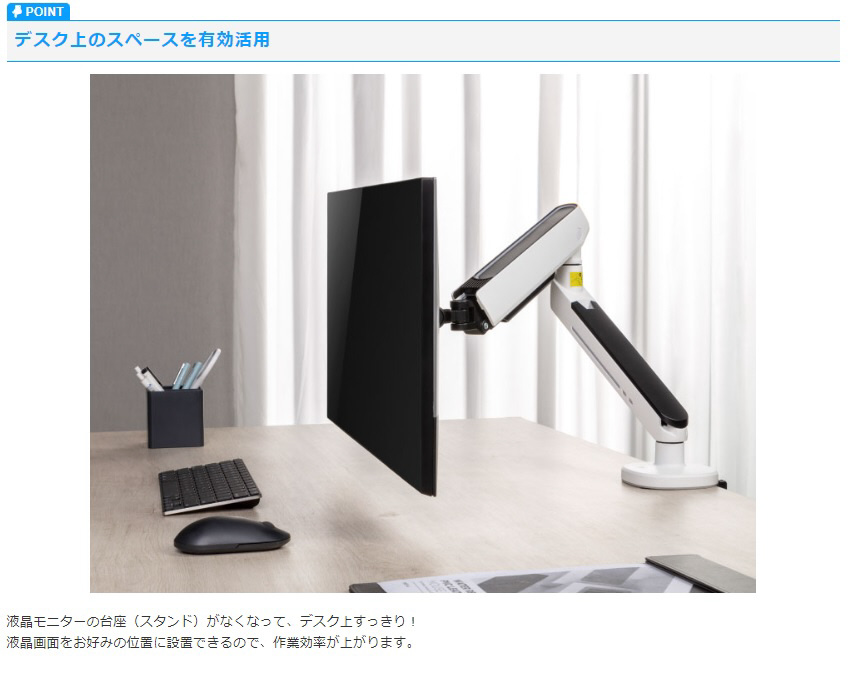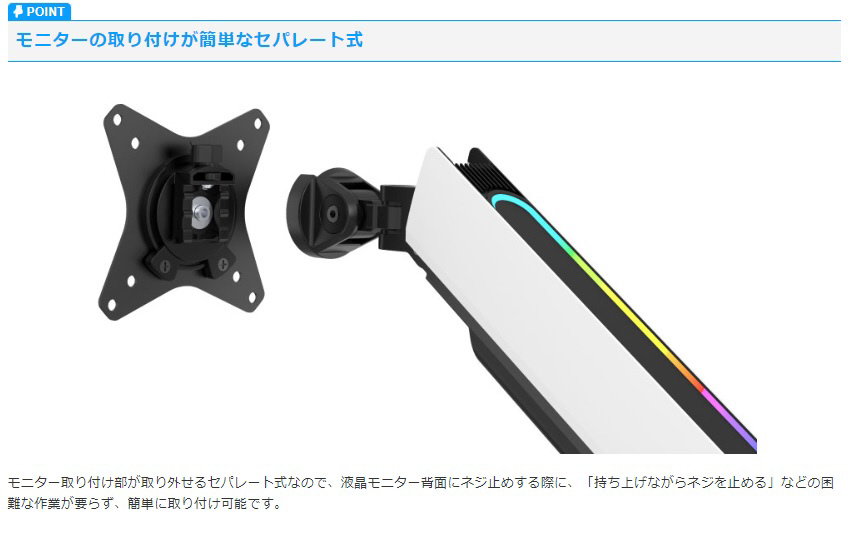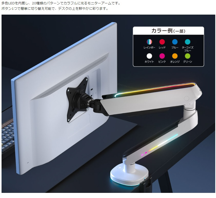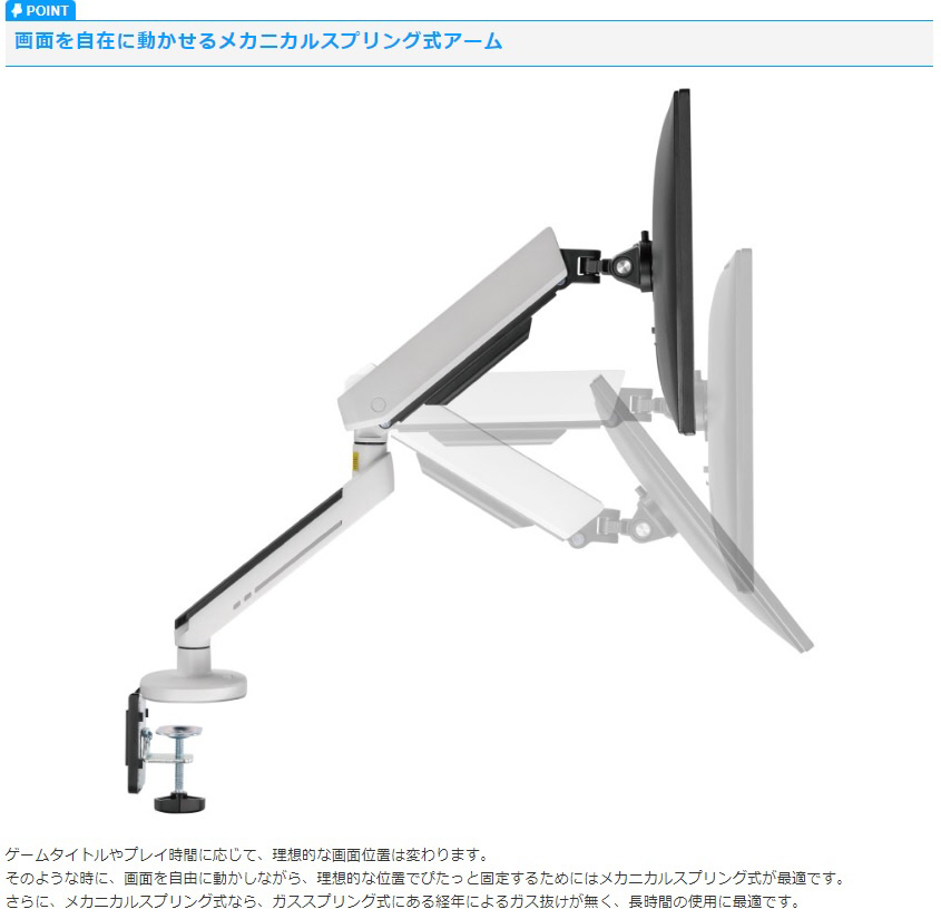 モニターアーム [1画面 /17〜35インチ] メカニカルスプリング式 LED付き GH-GAMB1-WH 【sof001】