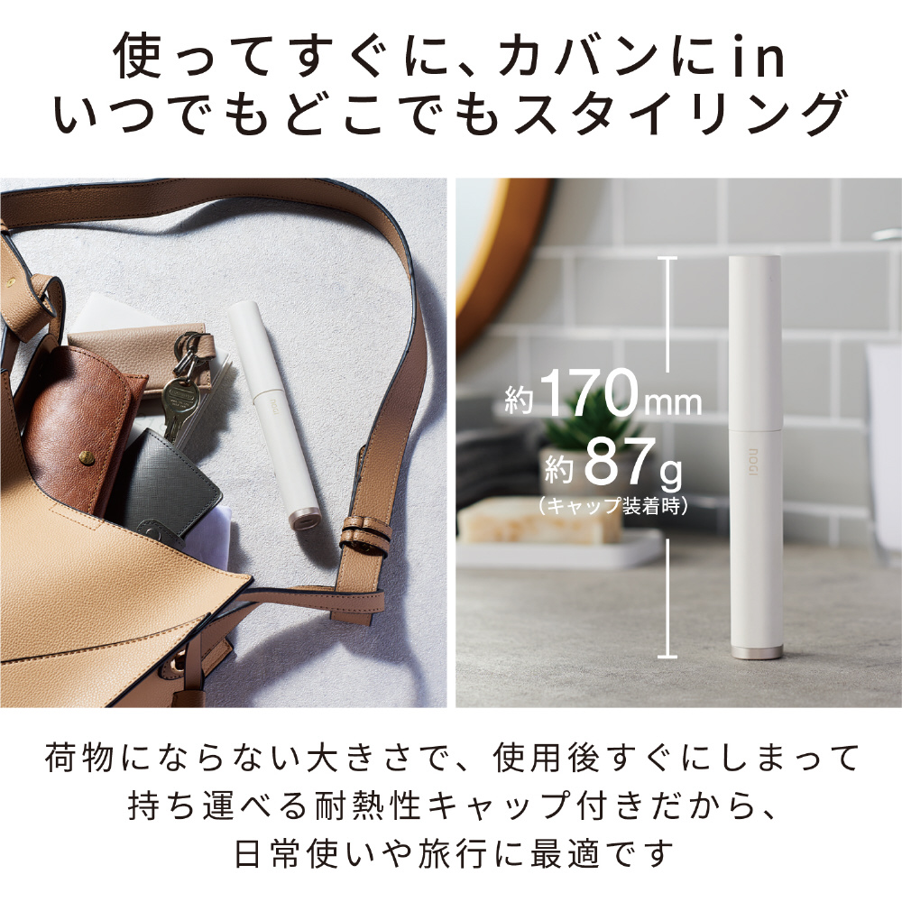 速攻お直し、前髪・おくれ毛もきまる。立ち上がりが早いから、出先でもたつかずにすぐに使用できます。