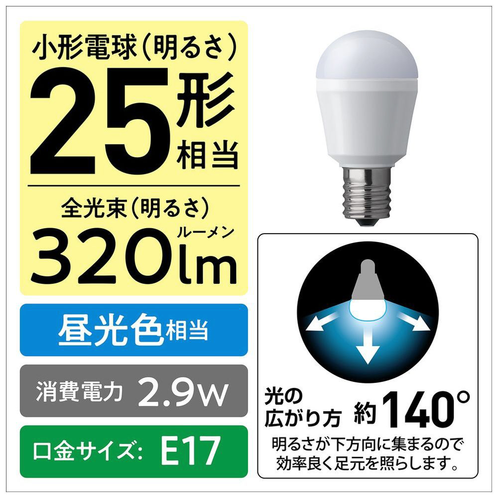 | 商品名 | LED電球 [E17 /一般電球形 /25W相当 /昼光色 /1個 /下方向タイプ] LDA3DHE17S2 |