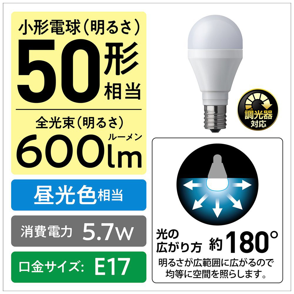 商品名 LED電球 [E17 /一般電球形 /50W相当 /昼光色 /1個 /広配光タイプ] LDA6DGE17DSK5