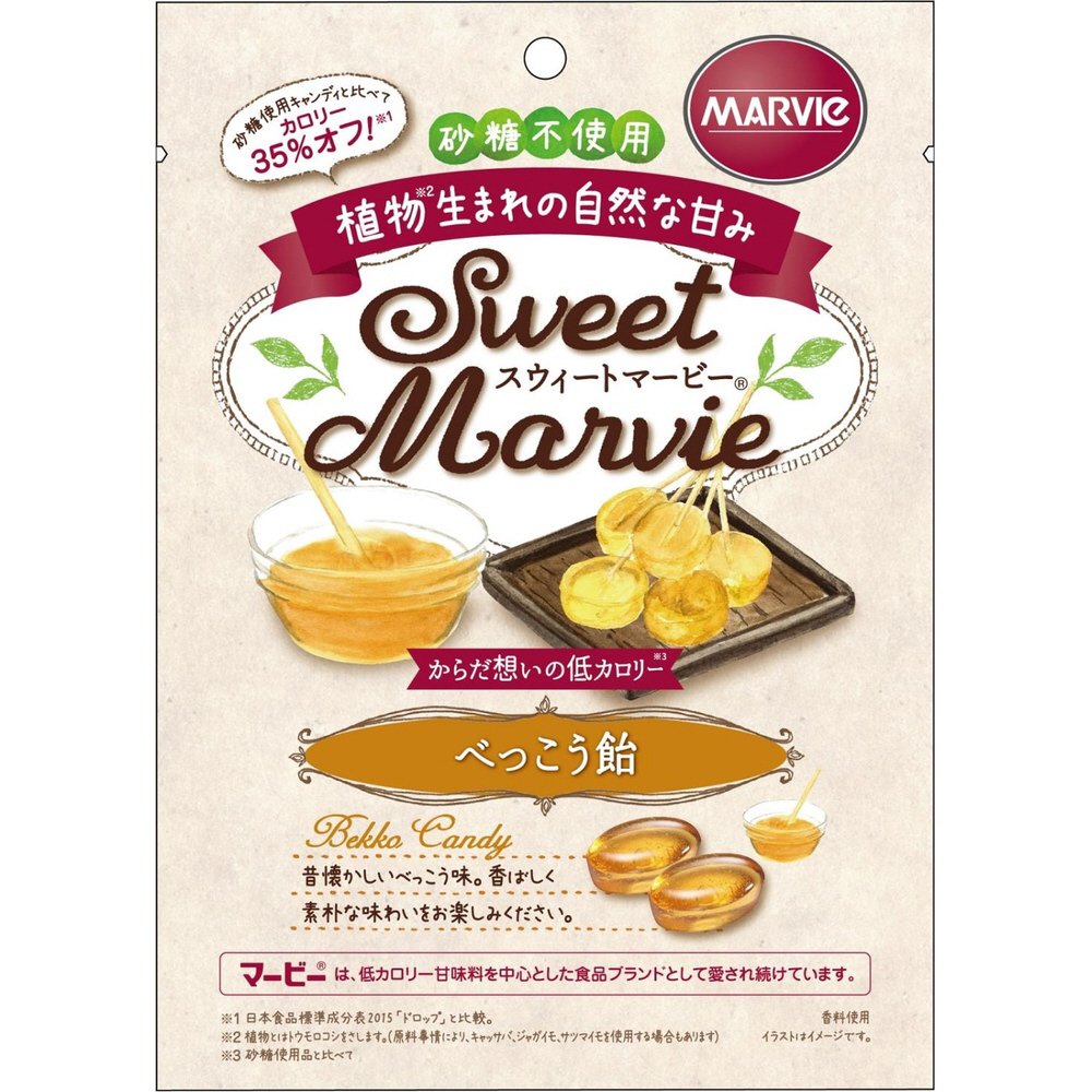 低カロリー甘味料 マービー。1971年、食事療法を支えるために誕生したマービーは、砂糖の代わりに還元麦芽糖を使った食品のシリーズ。