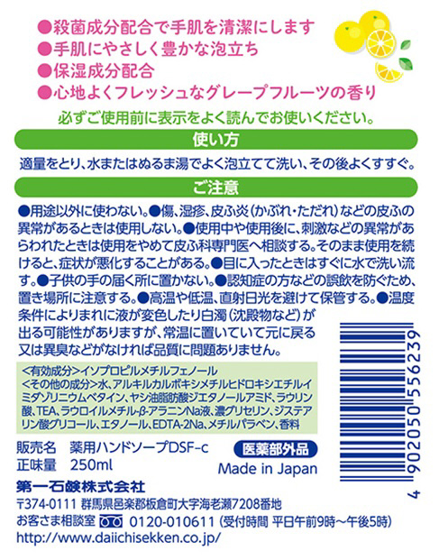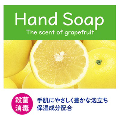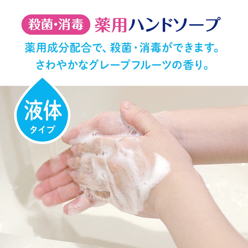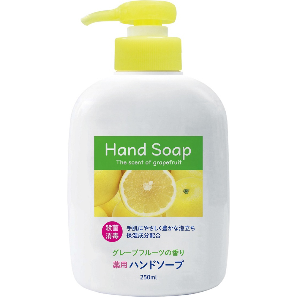 薬用成分配合の液体タイプのハンドソープ。グレープフルーツの香りつき