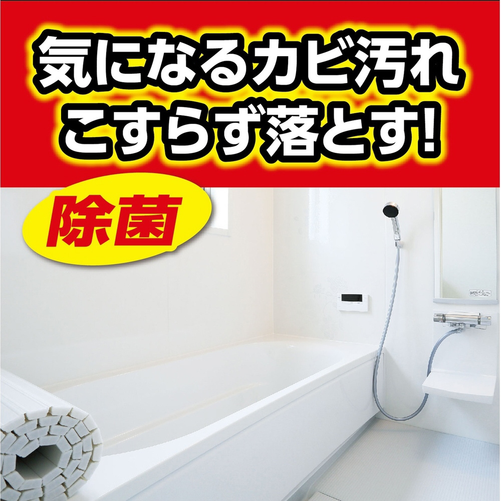 浴槽内のカビ汚れを、こすらずしっかり落とします。浴槽の壁やタイル、目地、扉のゴムパッキンの汚れを落とします。