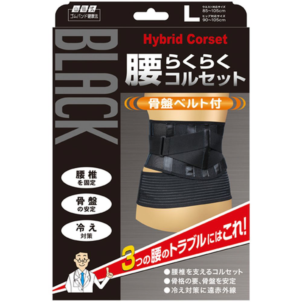 山田式 ブラック 腰らくらくコルセット L