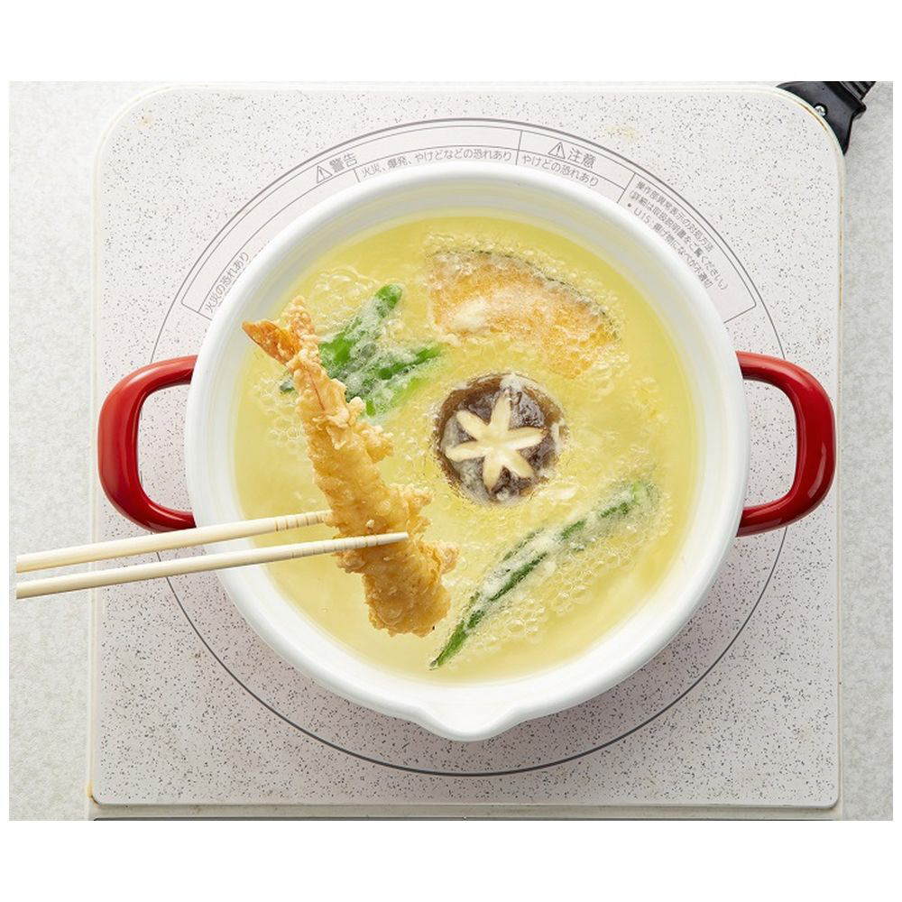 揚げ物だけでなく、卓上でチーズフォンデュ・チョコレートフォンデュ・オイルフォンデュなども楽しめる。ホーローは臭いの移りにくい素材で使用後の油の臭いも気にせず使えます。