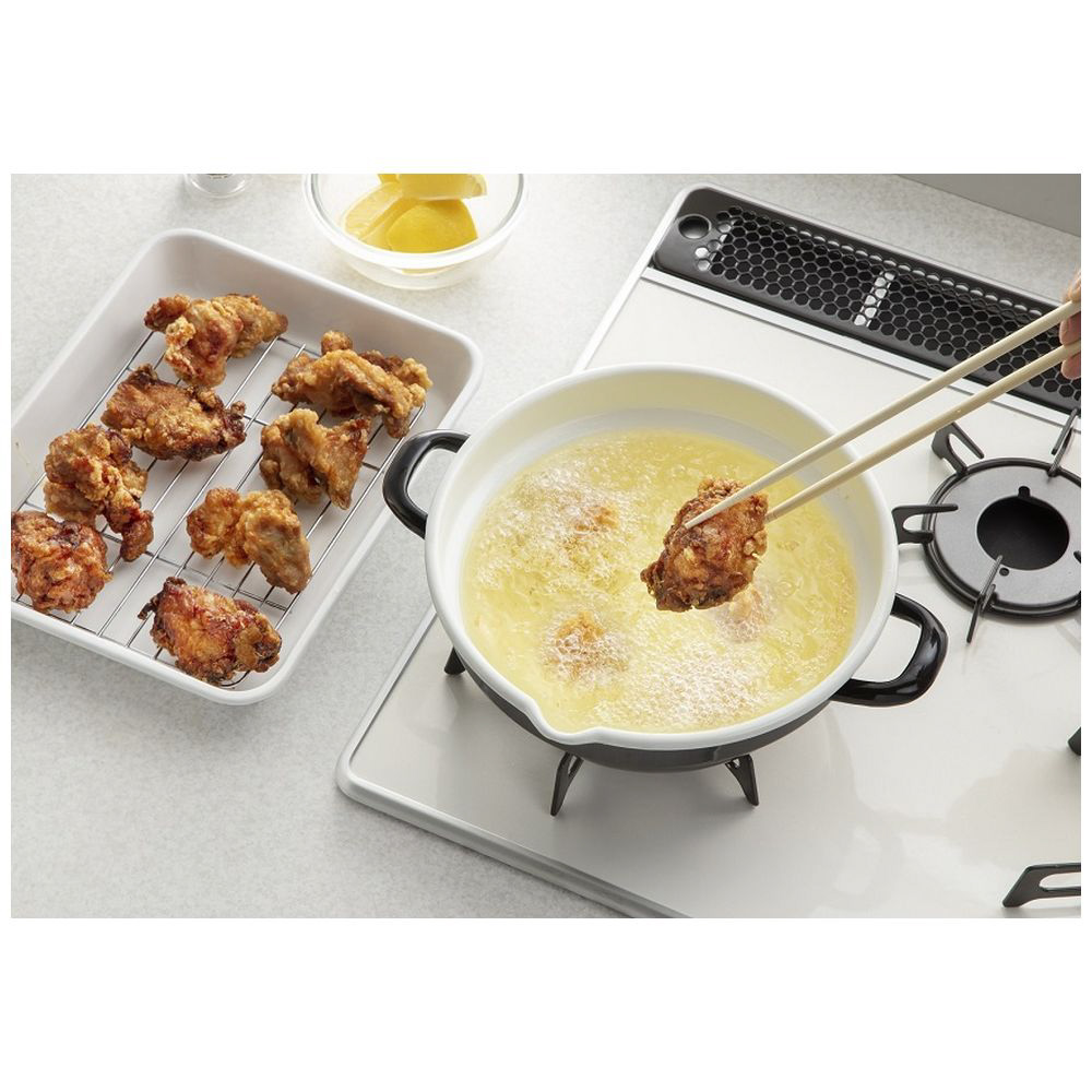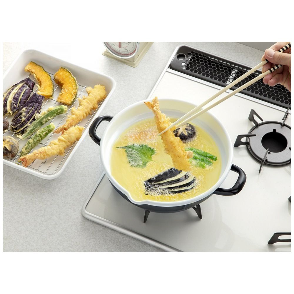 IH200V対応。ホーローは温度変化が少なく揚げ物に最適。3.0L。