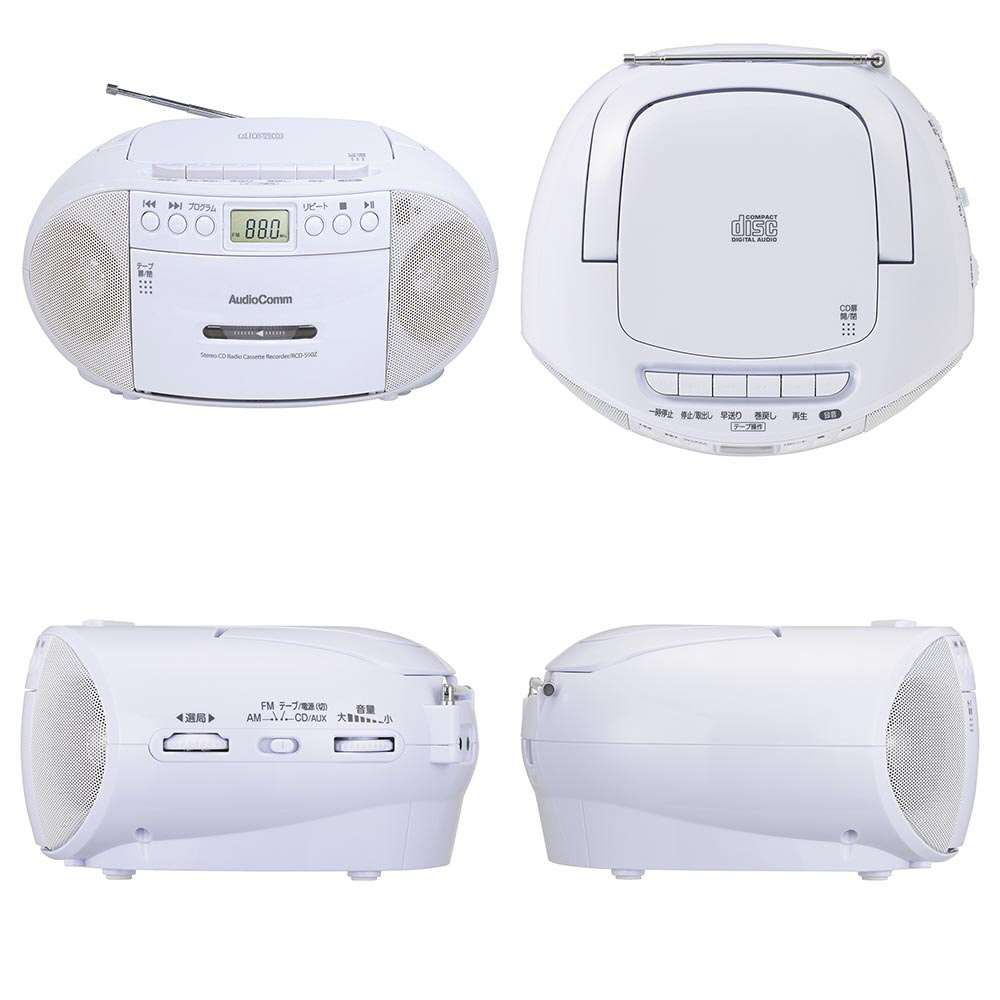CDラジオカセットレコーダー AudioComm ホワイト RCD-590Z-W ワイドFM対応/CDラジカセ