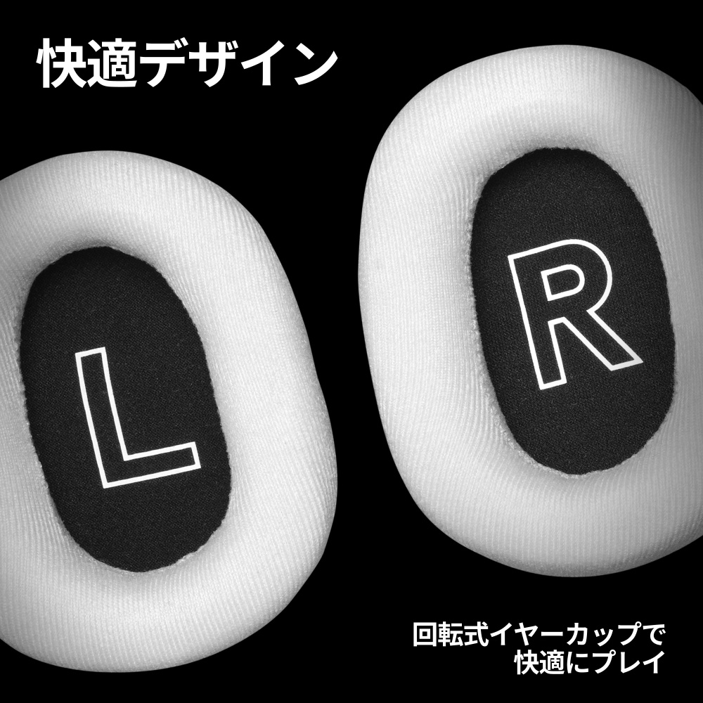 | 付属品 | 低反発合成皮革製イヤーパッド 交換用低反発クロス イヤーパッド USB-A LIGHTSPEEDワイヤレスレシーバー(3.5mmポート搭載) 着脱式マイク(フォームウインドスクリーン付き) USB-A - USB-C充電ケーブル(1.8m) 3.5mmケーブル 柔らかな収納バッグ 保証書、保証規定 |