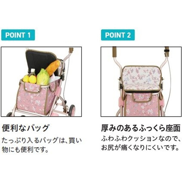 ふわふわクッションで座り心地が快適!たっぷり収納できるミドルタイプのシルバーカー。