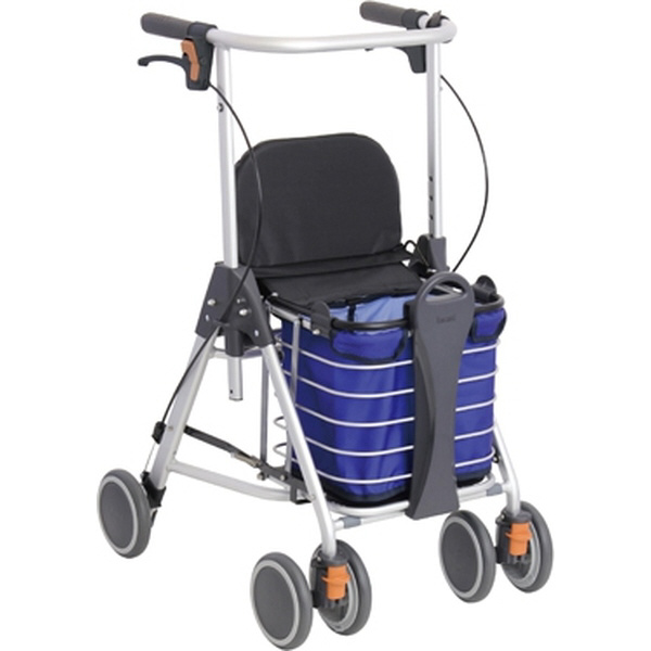 買い物カゴがのせられる、カゴのせ機能付きの大容量ワゴンタイプ歩行車。