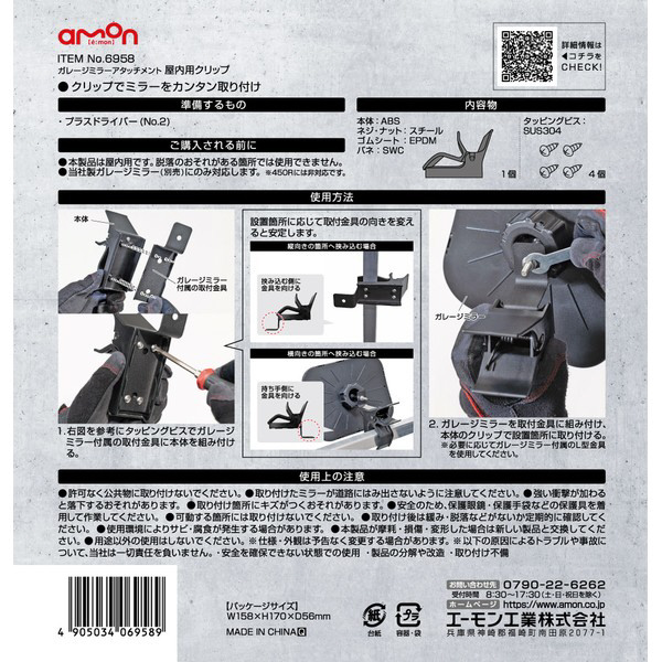 | 商品名 | 6958 ガレージミラーアタッチメント 屋内用クリップ 6958 |