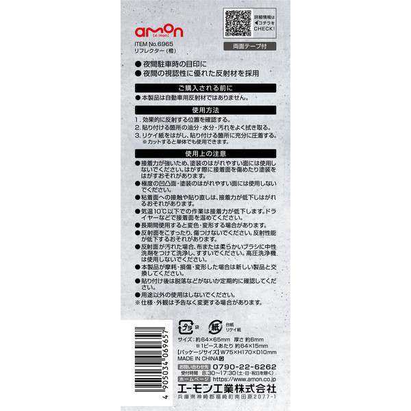6965 リフレクター(橙色) サイズ:約64mm×15mm厚さ約6mm 1シート/4個 橙 6965